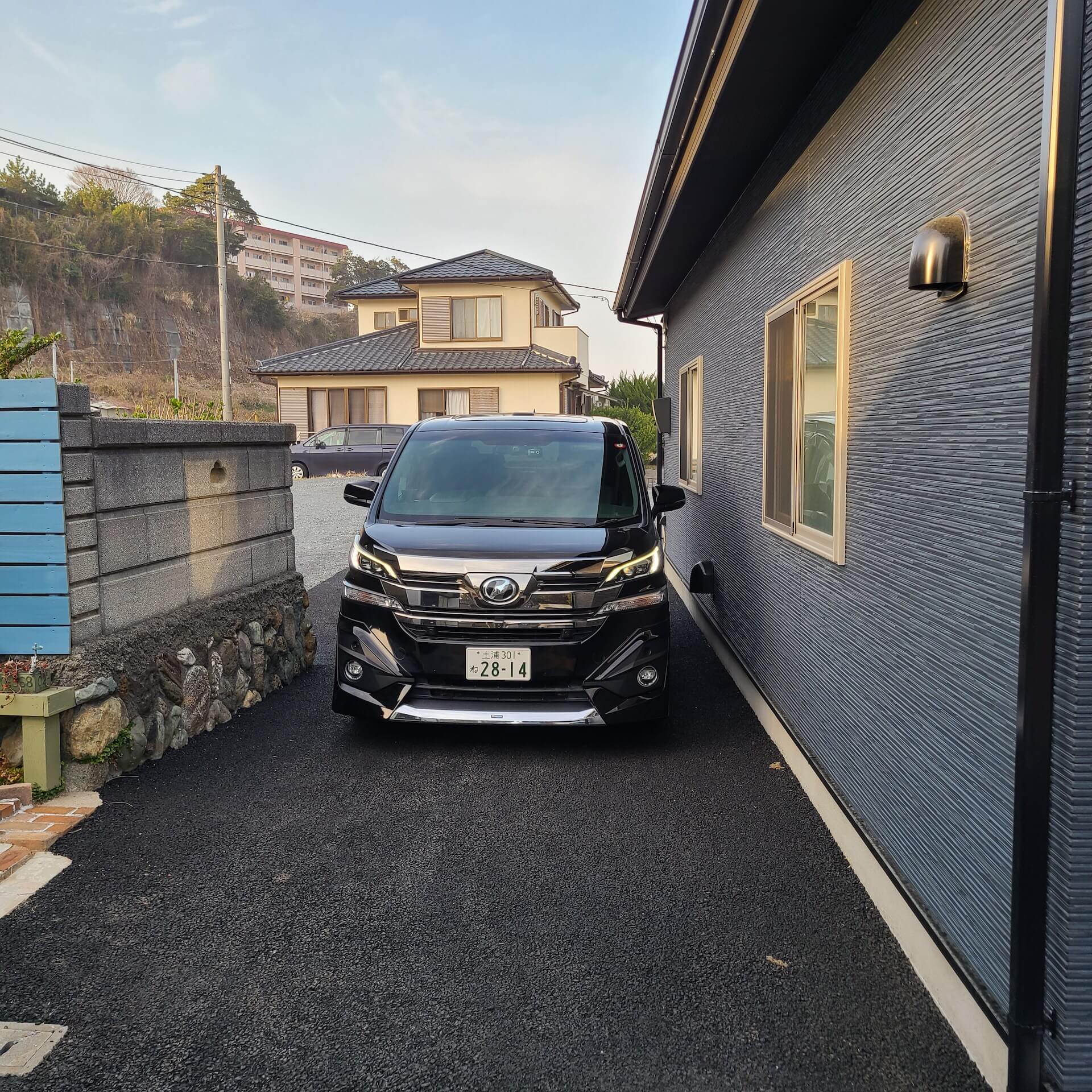 建物裏はこんな感じになっております(道幅約3m) 撮影車両:トヨタベルファイア(30系)